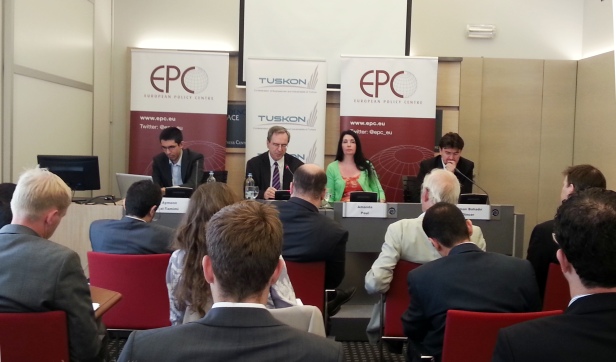 “The Iraq crisis, ISIS and the region” briefing was organized by EPC in cooperation with the Confederation of Businessmen and Industrialists of Turkey, TUSKON office in Brussels. Speakers were Joost Hiltermann, International Crisis Group, Osman Bahdir Dincer, Research Fellow, USAK, Ankara and Aymenn al-Tamimi, Independent Middle-East Expert. The meeting was moderated by Amanda Paul, Policy Analyst and Programme Executive of EPC.